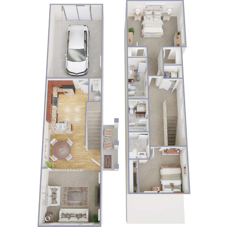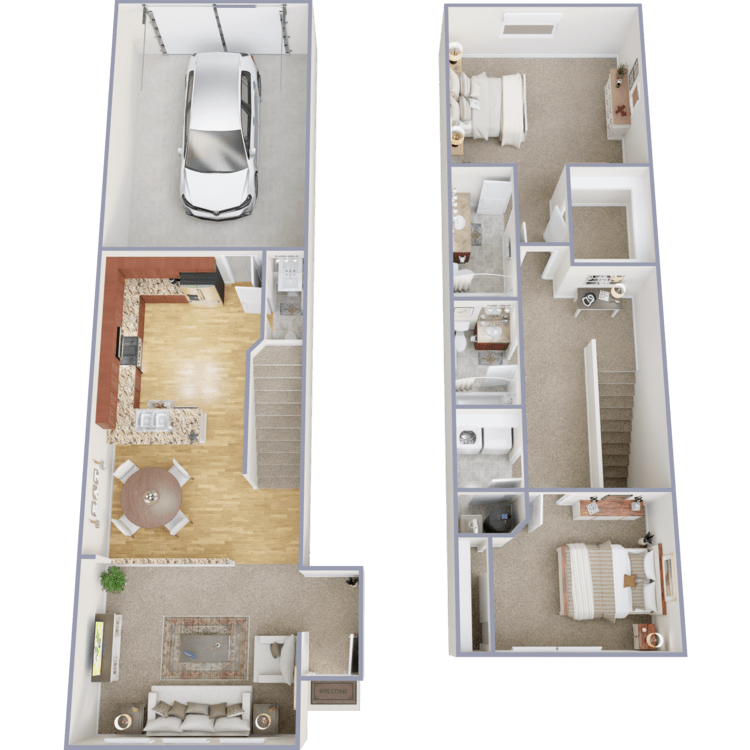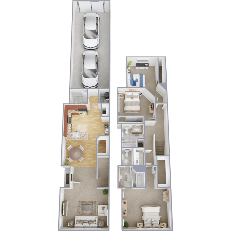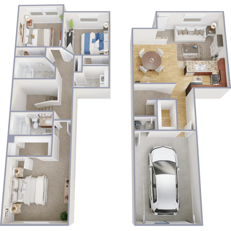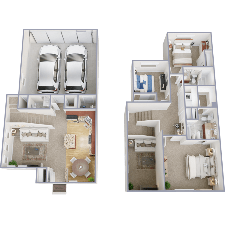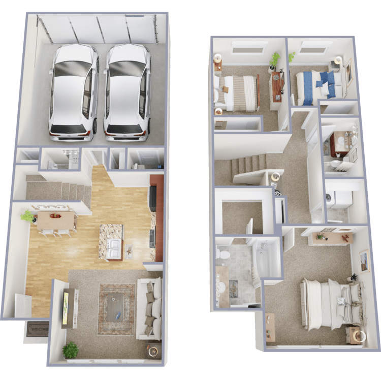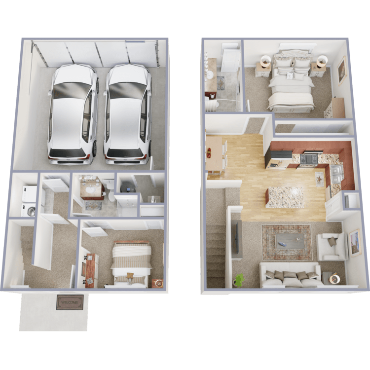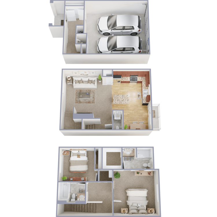 We proudly offer pet-friendly, spacious townhome-style apartments for rent in various floor plans, including two and three-bedroom options with garages. You will love your energy-efficient home, with an array of walk-in closets, extra storage options, high vaulted ceilings, and a fully equipped kitchen. Select homes allow you to enjoy a covered front porch and study. We have something for everyone here, with washers and dryers in the homes.